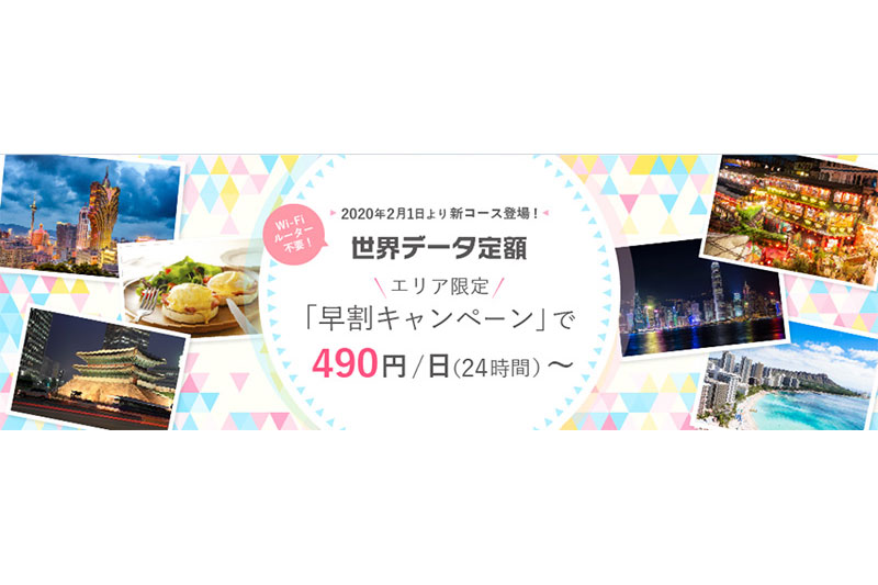 auの「世界データ定額」、事前予約で24時間490円~の「早割」