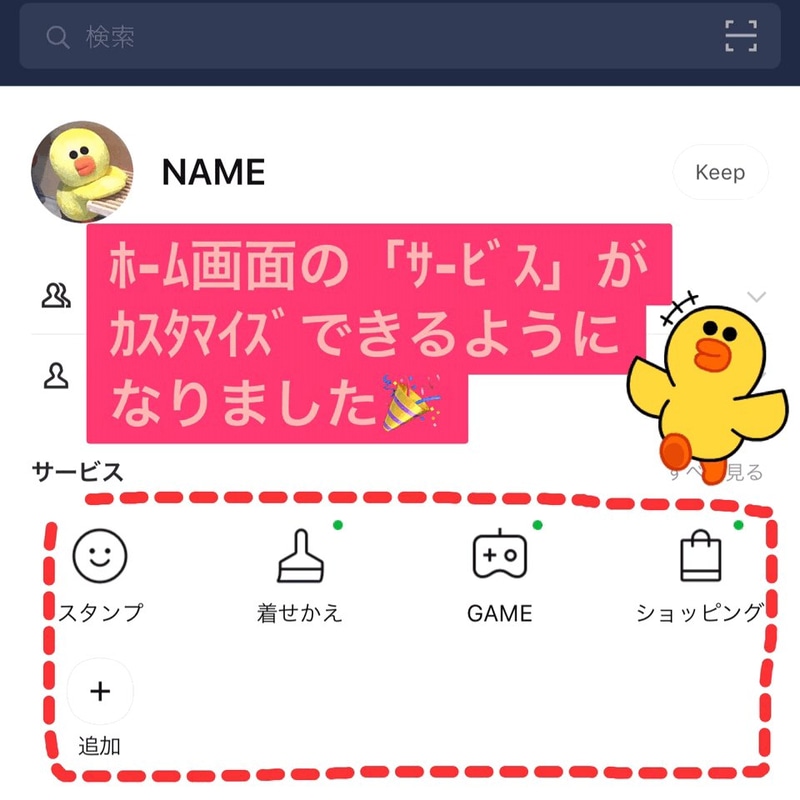 「LINE」のホームタブにお気に入りのサービスを配置、iPhone版から