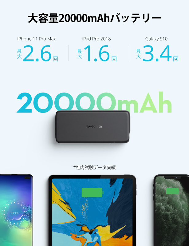 RAVPower、ノートパソコンも充電できる60W出力対応の20000mAhモバイルバッテリー(3/7)