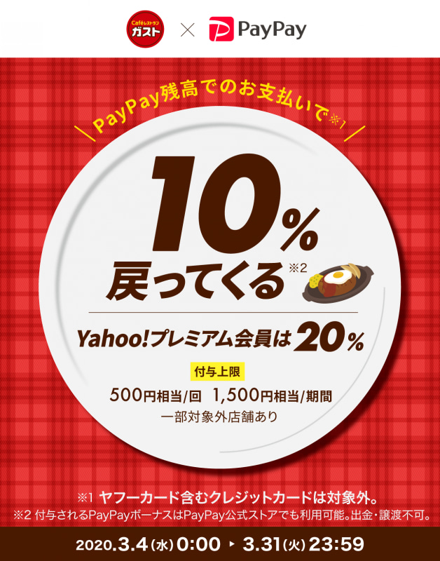 「PayPay」2月は大手飲食店で40%還元、上限は1500円