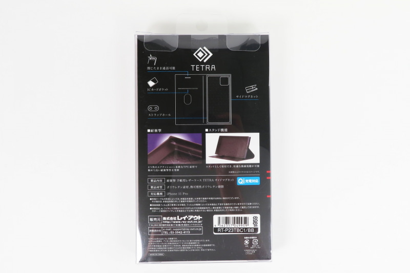 iPhone11 Pro 耐衝撃 手帳型レザーケース TETRA サイドマグネット ブラック