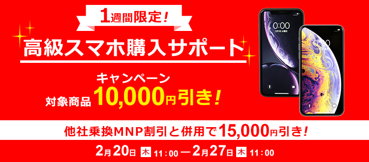 分割払いで1万円引き、goo Simsellerの「高級スマホ購入サポートキャンペーン」