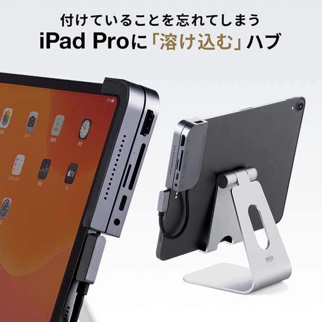 サンワサプライ、iPad Proの本体に一体化するデザインのUSBハブ、7255円