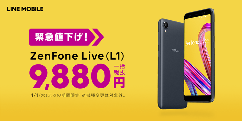 LINEモバイル、「ZenFone Live(L1)」を9880円で販売