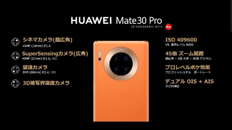 • ファーウェイ、トリプルカメラ+センサーの「Mate 30/30 Pro」