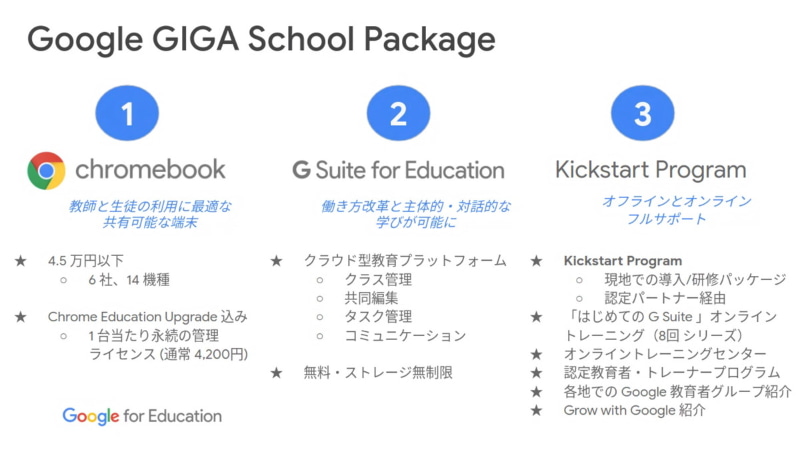 Google、4万5000円以下で生徒1人にPC1台の「GIGAスクール構想」を実現する「Google GIGA School Package」(10/27)