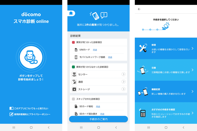 ドコモ、スマホの故障診断アプリ「スマホ診断 online」に新機能
