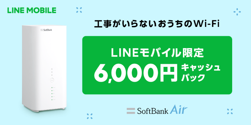 「SoftBank Air」を申し込んで6000円キャッシュバック、LINEモバイルの限定特典
