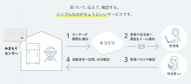 IoTセンサーで負担の少ない高齢者見守り、ネコリコの「独居ケアアシスタント」
