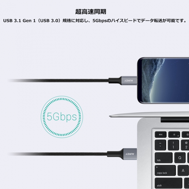 USB 3.1 Gen 1をサポートする、AUKEYのUSB-TypeCケーブル3本セットが1259円