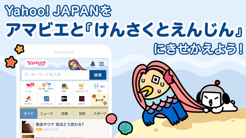 ヤフー、スマホ向けに妖怪「アマビエ」のきせかえテーマを配信