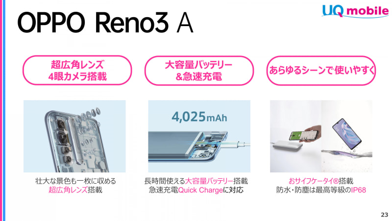 • UQ mobile、「Reno3 A」「Galaxy A41」「AQUOS sense3 basic」や新料金を発表