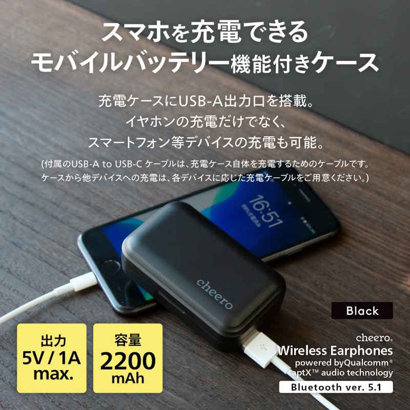 cheeroから充電ケースをモバイルバッテリーとして利用できる完全ワイヤレスイヤホン、5300円(4/6)