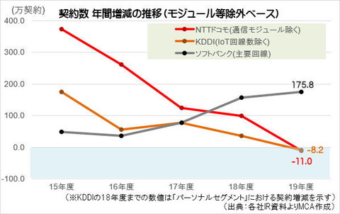 通信キャリア各社の2019年度決算出揃う、年間での契約増減状況は