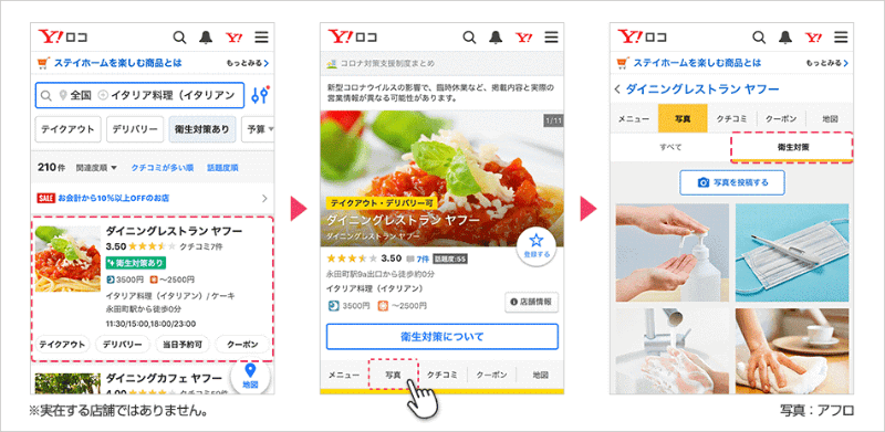 「Yahoo!ロコ」で店舗の新型コロナ対策が写真でわかる機能