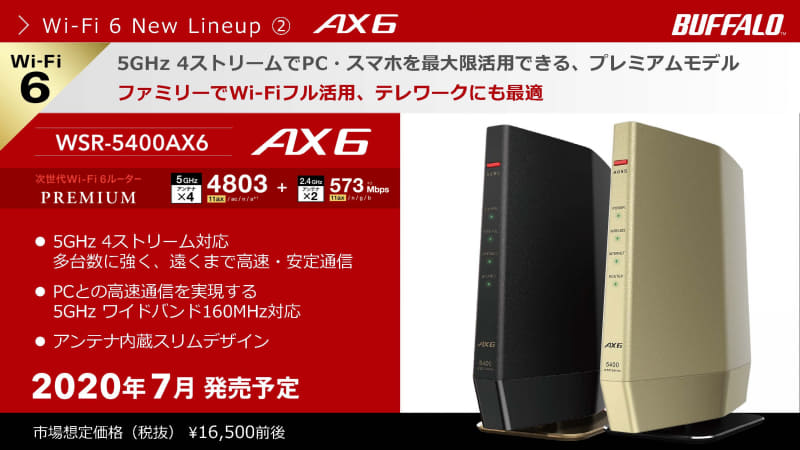 Wi-Fiの次世代規格「Wi-Fi 6」に対応、バッファローの新Wi-Fiルーター(12/29)