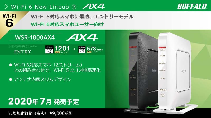 • バッファロー、1万円強のWi-Fi6対応ルーターを12月上旬に発売