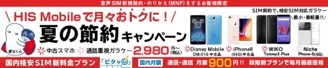 H.I.S.モバイル、Wi-Fiルータープランと音声通話SIM同時加入で3000円のキャッシュバック