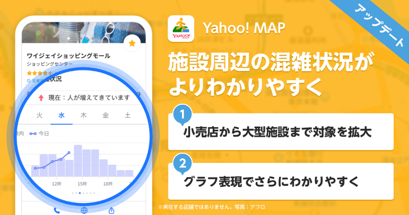 ヤフー、地図や検索結果でスーパーや薬局周辺の混雑情報を確認できるように