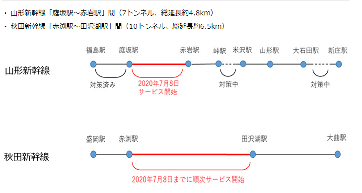 秋田新幹線と山形新幹線のトンネル内でサービスエリア拡大