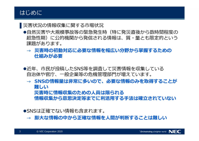NEC、Twitterの災害ツイート分析プラットフォームを提供――いち早く災害情報を整理・共有できる(3/16)