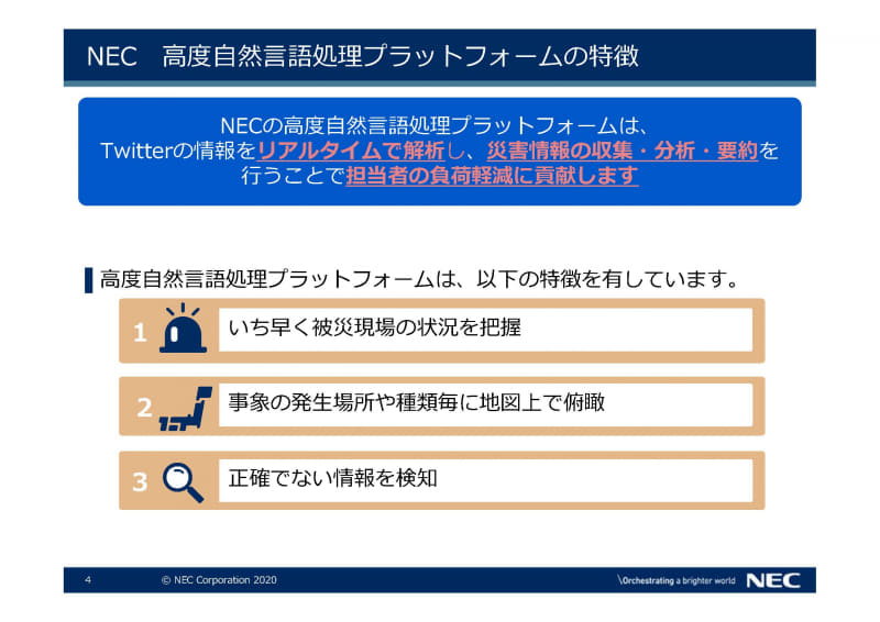 NEC、Twitterの災害ツイート分析プラットフォームを提供――いち早く災害情報を整理・共有できる(4/16)