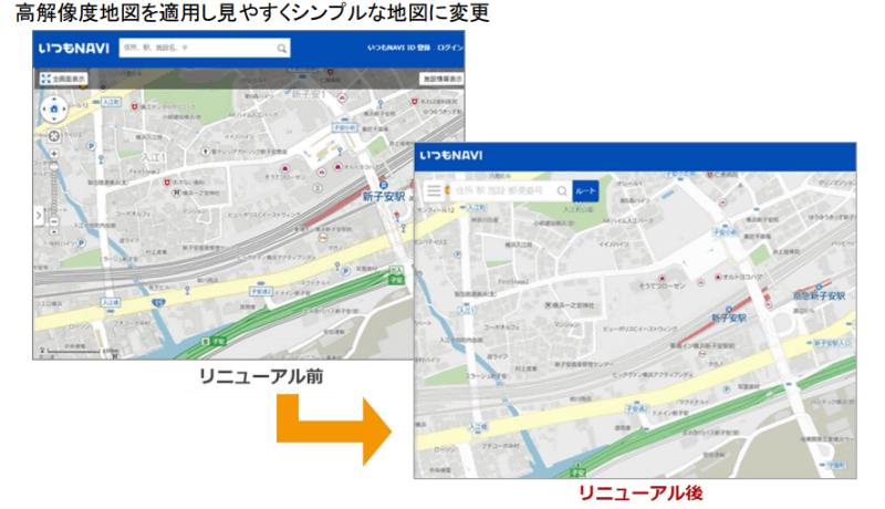 「いつもNAVI」がリニューアル、高解像度地図や操作性を改良