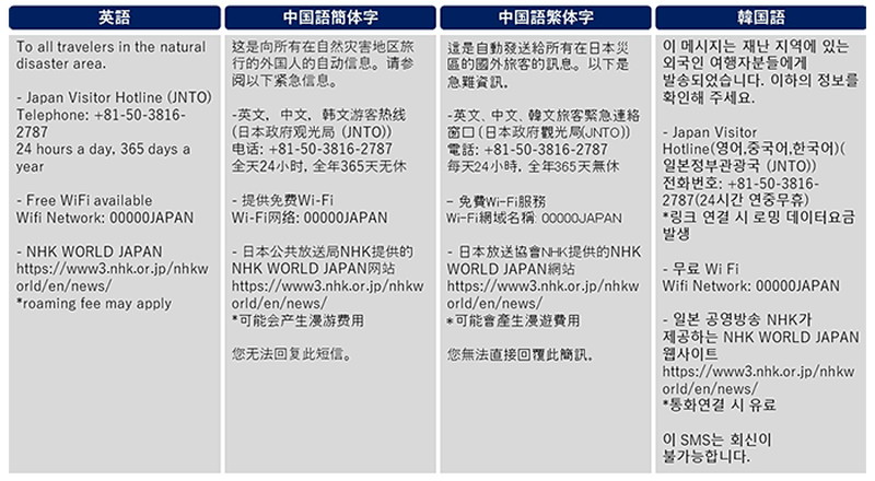 携帯3社、災害時に訪日外国人向けにニュースなどをSMSで配信する「災害時訪日外国人支援SMS」の運用を開始