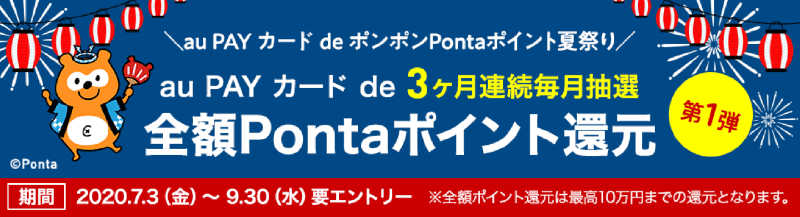 「au PAY カード」、抽選で毎月20名に最大10万ポイント・200名に1万ポイント還元