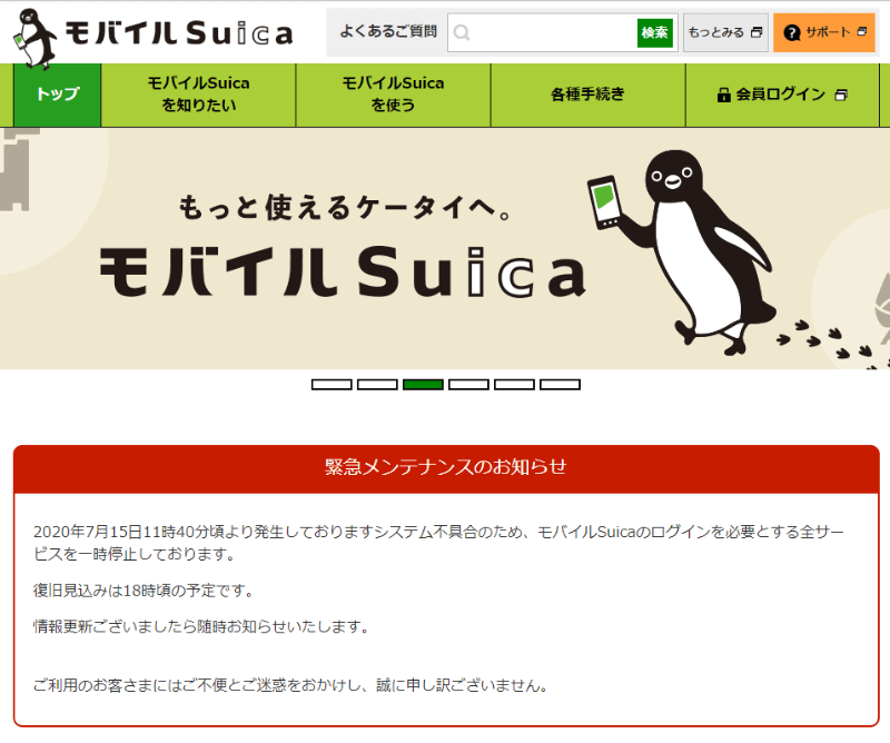 モバイルSuicaとApple PayのSuicaの障害、15日17時過ぎに復旧