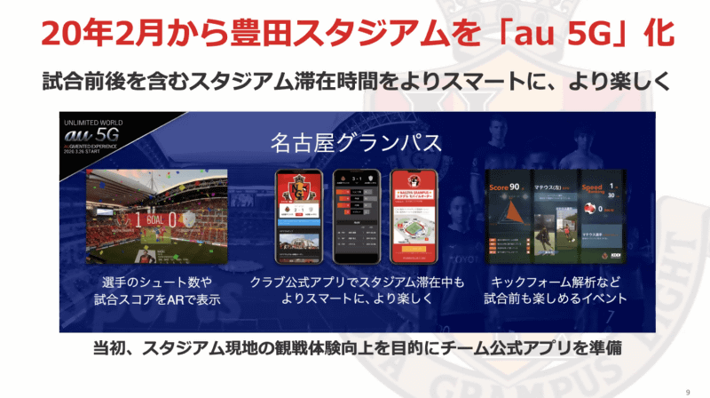 • 名古屋グランパスとKDDI、公式アプリを通じて遠隔でファンとチームがつながる観戦体験を提供