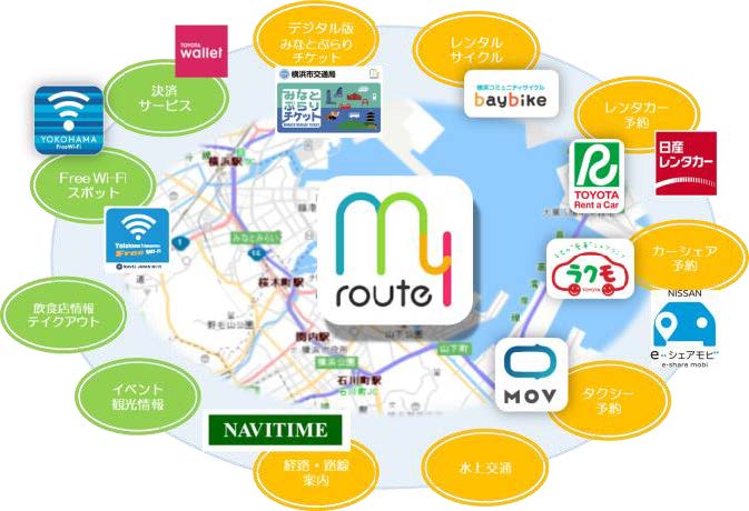 ルート検索アプリ「my route」横浜版をリリース――シェアサイクルやタクシー予約が便利に