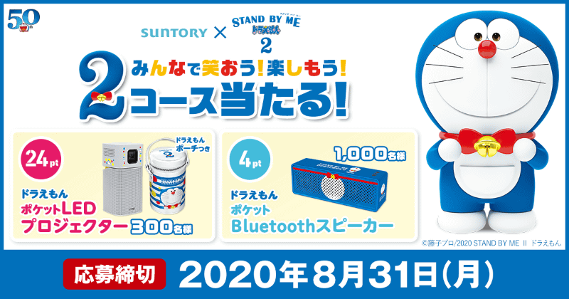 ドラえもんLEDプロジェクターやBluetoothスピーカーが当たる、サントリーのキャンペーン
