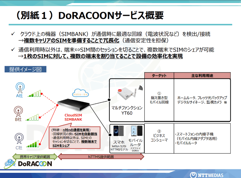 NTT MS、クラウドSIMを使う法人向けサービス「DoRACOON」