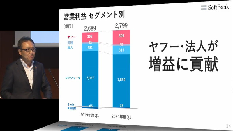 ソフトバンク決算、第1四半期はコンシューマー事業の減収を法人事業とヤフーでカバー
