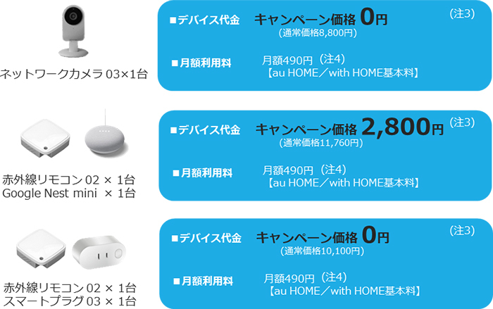 ネットワークカメラが0円、「au HOME/with HOME LIFE UP プロモーション デバイス割引キャンペーン」