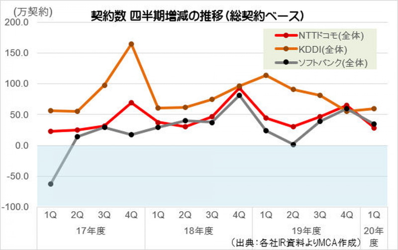 20年4~6月期はコロナ禍で顧客流動性が低下、端末販売に急ブレーキかかる