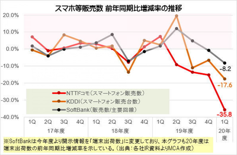20年4~6月期はコロナ禍で顧客流動性が低下、端末販売に急ブレーキかかる