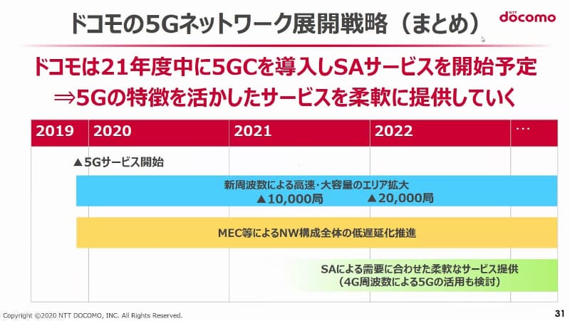 ドコモの5G、スタンドアローン方式は2021年度にスタート