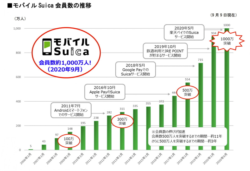 JR東日本の「モバイルSuica」、会員数が50万人突破
