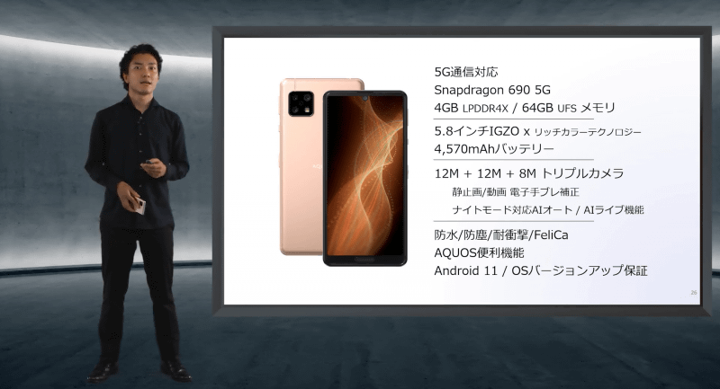 • SIMフリー版「AQUOS sense5G」発表、3月12日発売