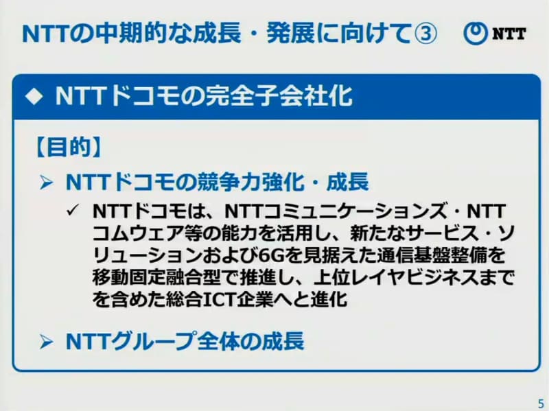 NTTのドコモ完全子会社化記者会見――GAFAと戦える総合ICT企業を目指す