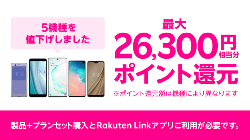 Rakuten UN-LIMIT V契約で最大2万6300円分のポイント還元、Galaxy S10など値下げ