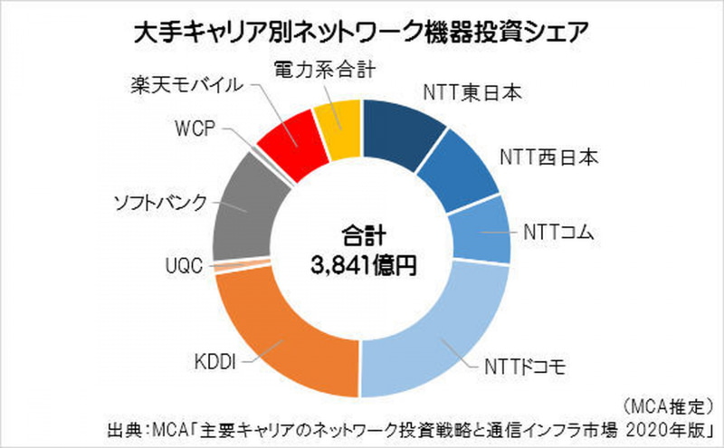 国内キャリア機器投資は2019年度に約3800億円、半数がNTTグループ