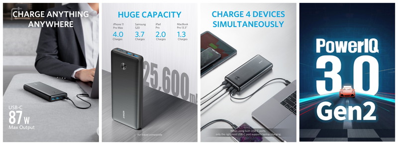 最大87W出力、100W入力に対応、4台同時充電も可能な「Anker PowerCore III Elite 25600 87W」