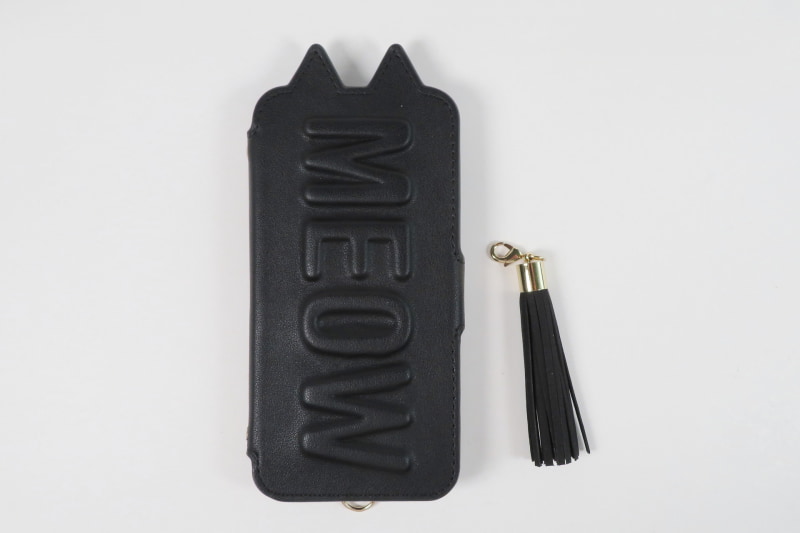 Tassel Tail Cat Flip Case for iPhoneSE(第2世代)(black)