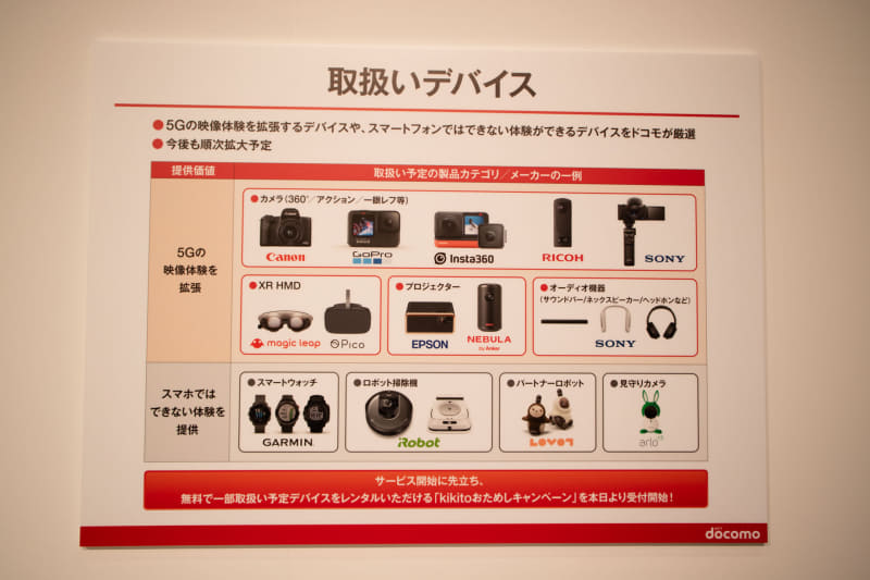 • ドコモが「kikito」スタート、一眼レフやロボット掃除機など50製品をレンタル