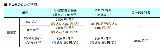 ドコモ、22歳まで利用料が割引きされる「ドコモのロング学割」