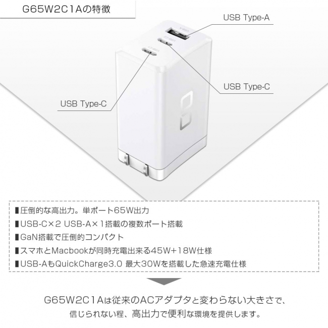 • GaN採用でクレカ半分サイズのUSB充電器「CIO-G65W2C1A」、PD 3.0/QC 3.0対応で65W出力も