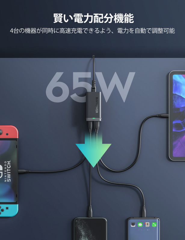 RAVPowerから4ポート搭載で最大65W出力のACアダプター、5499円から